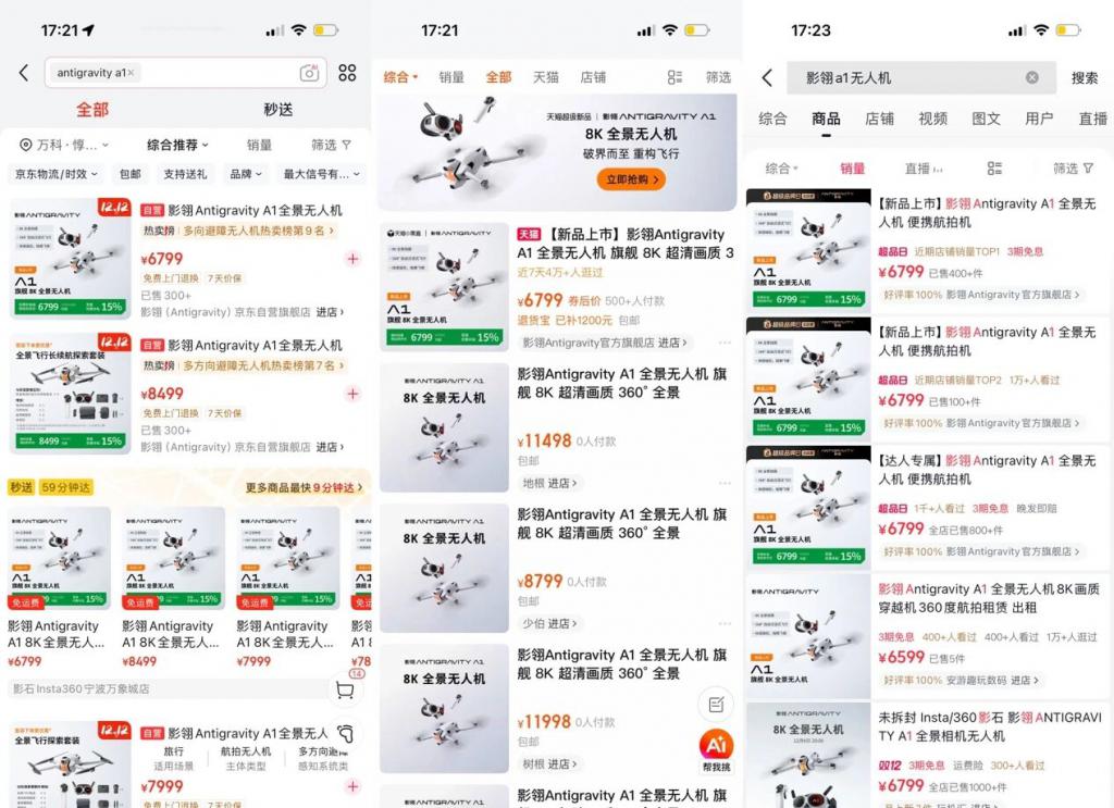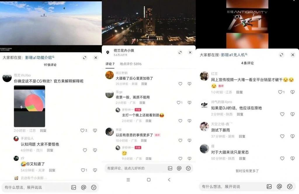 影翎 Antigravity A1 的定价在 6799 元到 8499 元,对标的是大疆的中高端产品。结合社交媒体上的用户体验来看,虽然官方宣称是 8K,实际出片观感仅有 1080P 的清晰度,24 分钟的续航也偏入门水平。